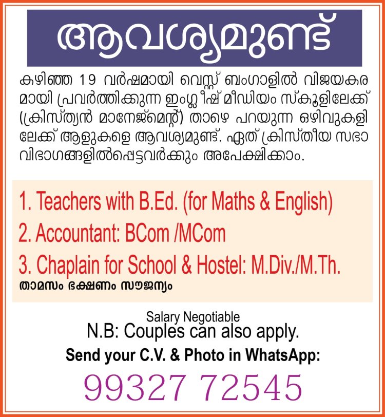 വിവിധ ഒഴിവുകളിലേക്ക് ആളെ ആവശ്യമുണ്ട്