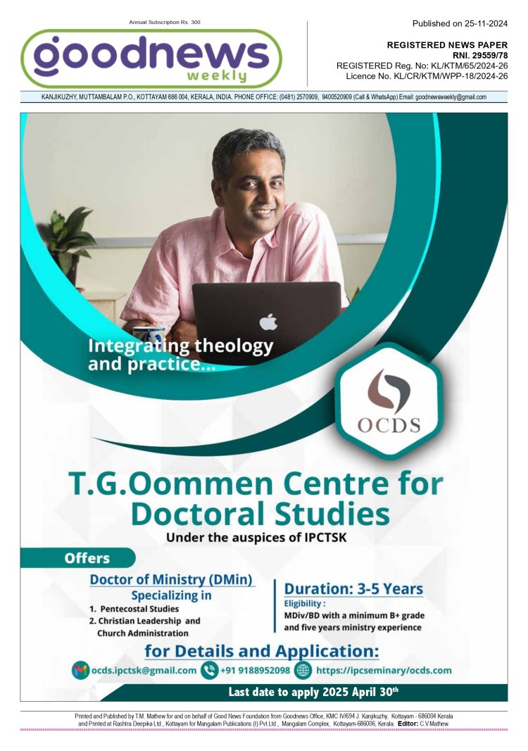 പാസ്റ്ററുടെ മകനും നിലവിൽ പൂർണ്ണ സമയ സഭാ ശുശ്രുഷകനും ബൈബിൾ കോളേജ് അധ്യാപകനുമായി എറണാകുളത്ത് കർത്തൃവേലയിലായിരിക്കുന്ന യുവാവിന് (29 / 6.1"), പൂർണ്ണ സമയ ദൈവവേലയ്ക്ക് വിളിയും സമർപ്പണവുമുള്ള യുവതികളുടെ മാതാപിതാക്കളിൽ നിന്നും വിവാഹാലോചനകൾ ക്ഷണിക്കുന്നു. Contact: +91 85471 73395 (WhatsApp) Email details to: prkjfrancis@gmail.com