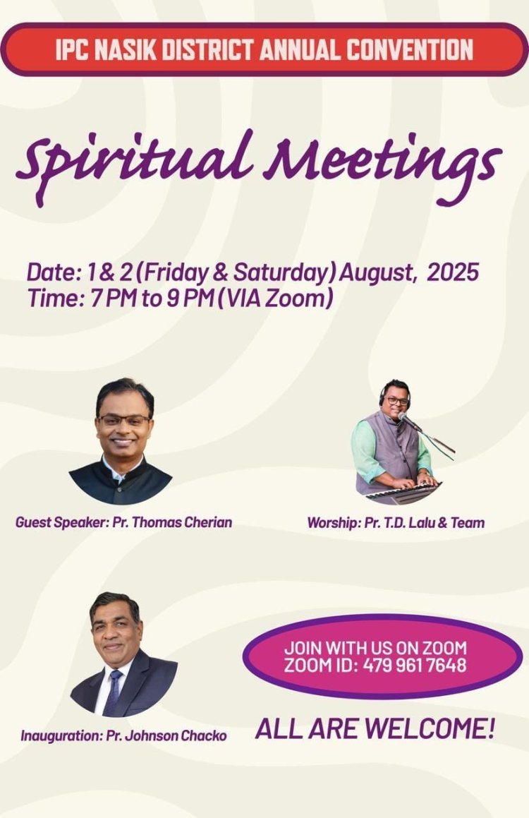 മഹാരാഷ്ട്ര നാസിക് ഡിസ്ട്രിക്ട് ദ്വിദിന കൺവെൻഷൻ ഓഗസ്റ്റ് 1 ഇന്ന് മുതൽ