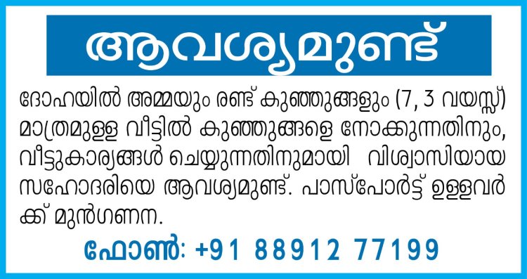 ദോഹയിലേയ്ക്ക് ആവശ്യമുണ്ട്