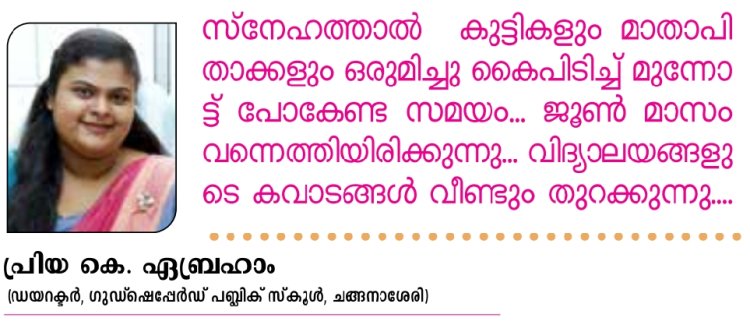 പുതിയ സ്കൂൾ വർഷം എല്ലായ്പ്പോഴും പുതിയ പ്രതീക്ഷകളെയും സ്വപ്നങ്ങളെയും കുറിച്ചുള്ളതാണ്. കുട്ടികൾക്ക് മികച്ചൊരു വിദ്യാഭ്യാസമാവാൻ മാതാപിതാക്കളും അധ്യാപകരും കൈകോർത്താൽ മാത്രമേ അത് സാധ്യമാകൂ. പഠനത്തിൽ മാത്രം അല്ല, ജീവിതത്തിൽ വിജയിക്കാൻ ആവശ്യമായ മൂല്യങ്ങൾ വളർത്തിയെടുക്കുന്നതിനും ഈ വർഷം വഴിയൊരുക്കട്ടെ....