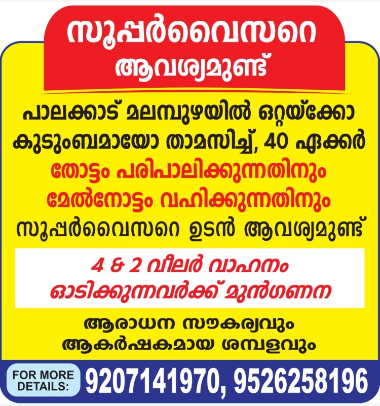 സൂപ്പർവൈസറെ ആവശ്യമുണ്ട്
