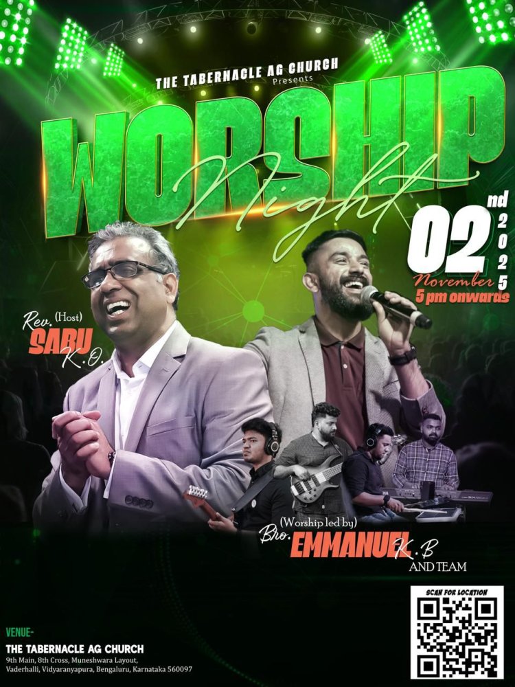 ടാബർനാക്കിൾ എ .ജി ചർച്ച് യുവജന സമ്മേളനവും വേർഷിപ്പ് നൈറ്റും നവം.1 ഇന്ന് മുതൽ