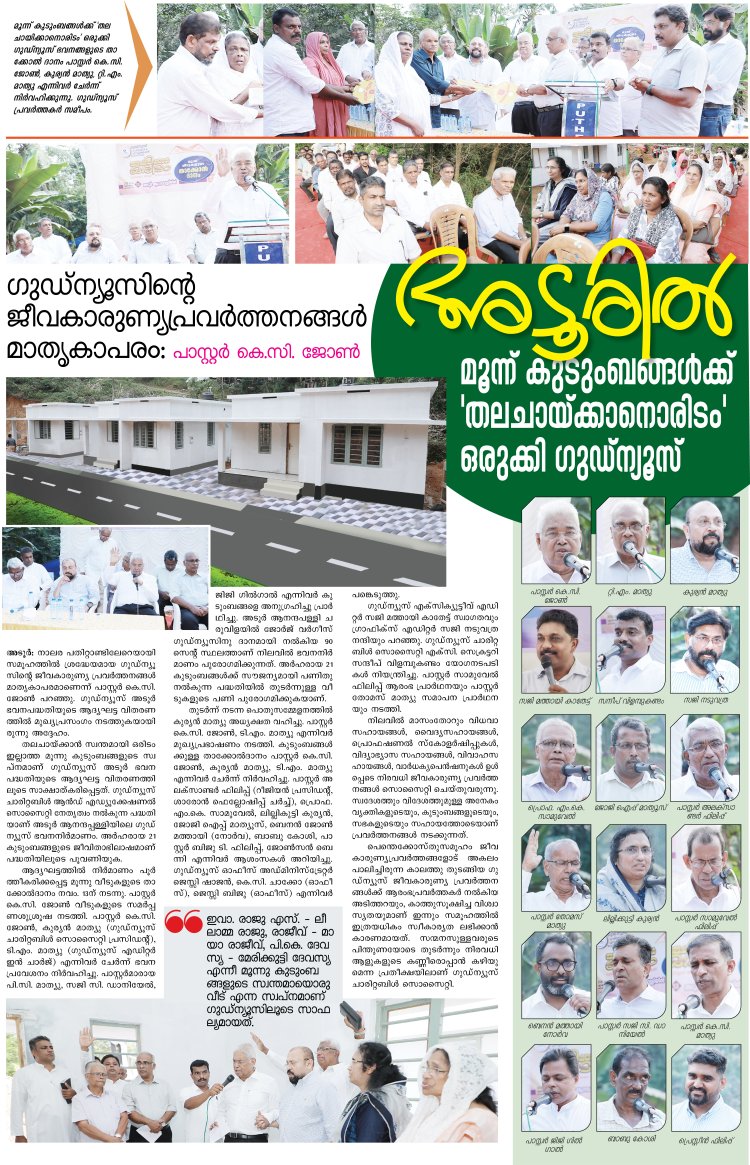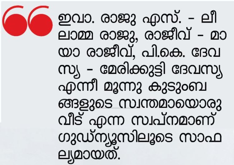 മൂന്ന് കുടുംബങ്ങൾക്ക് 'തലചായിക്കാനൊരിടം' ഒരുക്കി ഗുഡ്ന്യൂസ്
