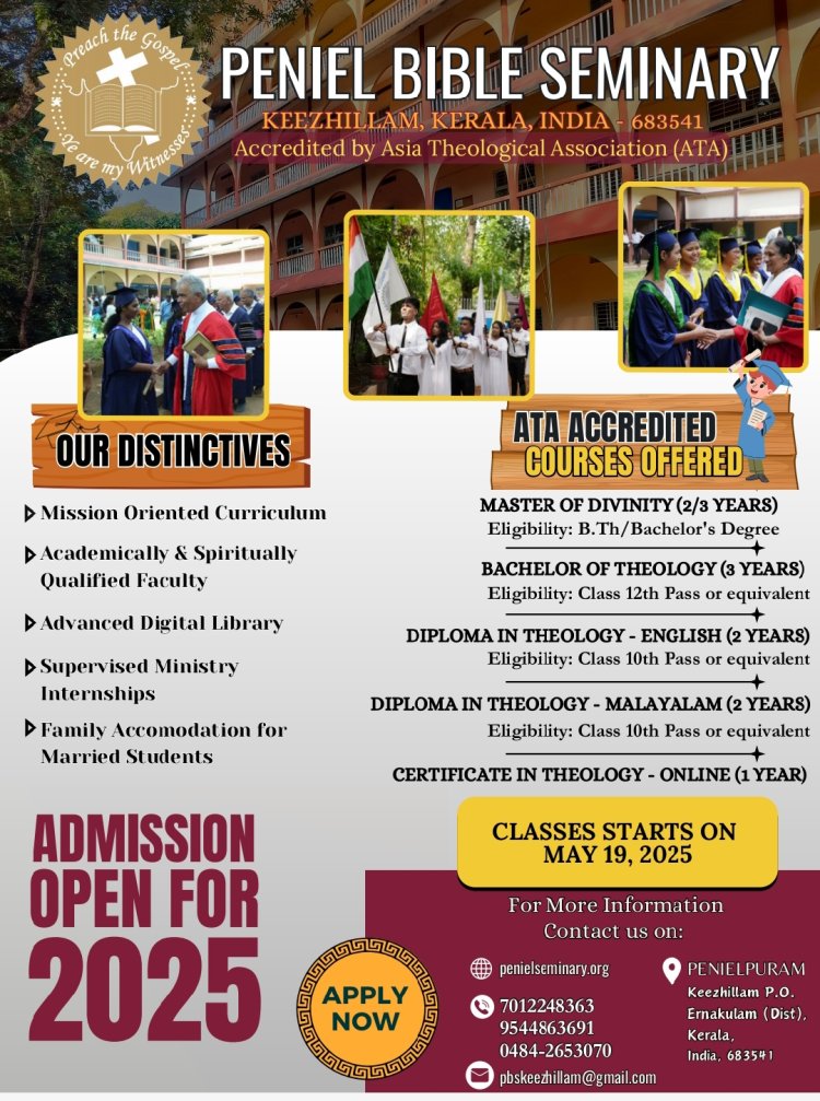 പെനിയേൽ ബൈബിൾ സെമിനാരിയിൽ വേദപഠനത്തിനു സുവർണ്ണാവസരം