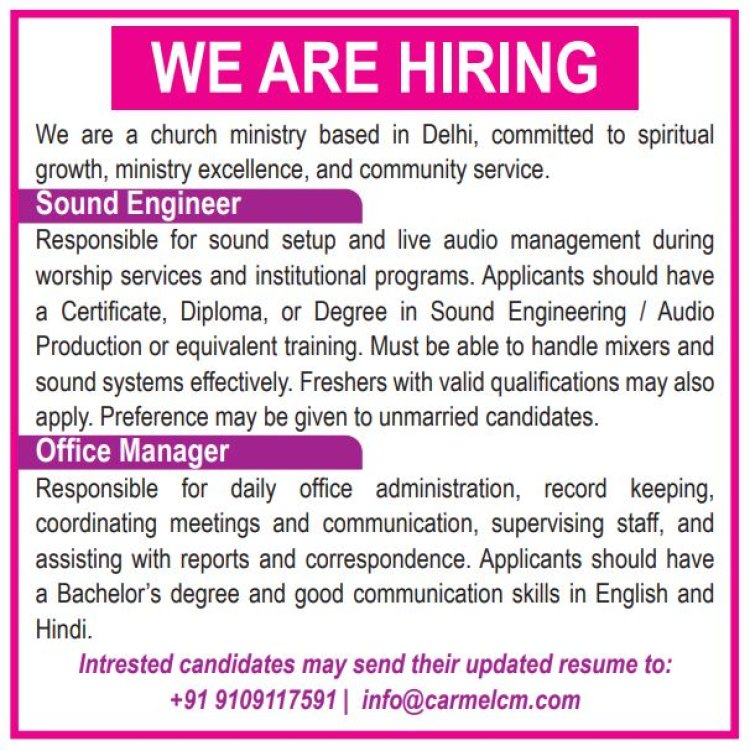 സിവിൽ എഞ്ചിനീറിംഗിൽ ഡിപ്ലോമയും കുറഞ്ഞത് രണ്ടു വർഷത്തെ പ്രവർത്തി പരിചയവും ഉള്ള സിവിൽ എന്ജിനീയേഴ്സിനെ ഒമാനിലേക്ക് അവിശ്യമുണ്ട്. GCC ഡ്രൈവിംഗ് ലൈൻസ് ഉള്ളവർക്ക് മുൻഗണന. Contact: +96891154584