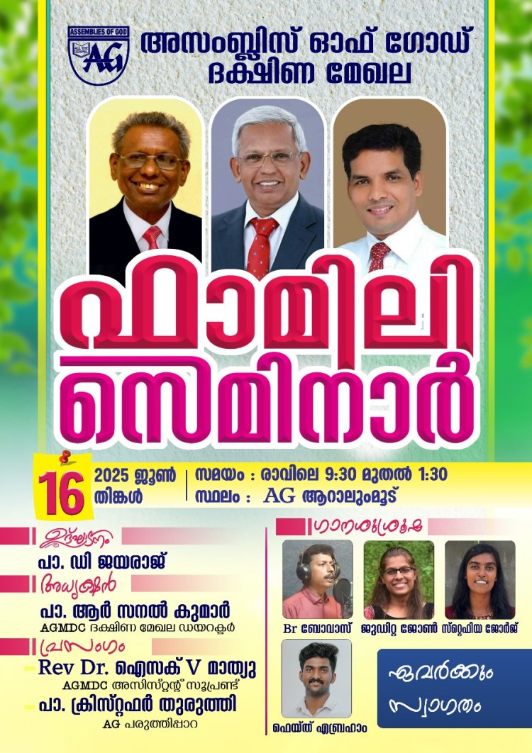 എ.ജി. ദക്ഷിണ മേഖല ഫാമിലി സെമിനാർ ജൂൺ 16 ന്