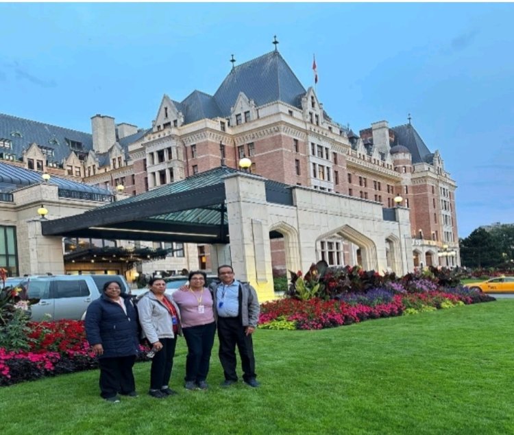 ഇതിനുശേഷം ഞങ്ങള് എംപ്രസ് ഹോട്ടല്, താഴികക്കുടങ്ങളുള്ള പാര്ലമെന്റ് കെട്ടിടങ്ങള് ഒക്കെ കാണുവാന് സാധിച്ചു. ഈ കെട്ടിടം വെള്ളത്തിന് മുകളില് സ്ഥിതിചെയ്യുന്നു, ക്രിസ്തുമസ് കാലങ്ങളില് ചുവപ്പും, പച്ചയും കളറിലുള്ള മൂവായിര ത്തിലധികം ദീപങ്ങളാല് അലങ്കരിക്കും. എല്ലാ രാത്രിയിലും പാര്ലമെന്റ് മന്ദിരങ്ങളെ മൂടുന്ന ലൈറ്റുകളുടെ തിളക്കം ആര്ക്കും ശ്രദ്ധിക്കാതിരിക്കാന് കഴിയില്ല. എല്ലാ രാത്രിയിലും സൂര്യാസ്തമയം മുതല് സൂര്യോദയം വരെ പാര്ലമെന്റ് കെട്ടിടങ്ങളുടെ ലൈറ്റുകള് ഇന്നര് ഹാര്ബറില് തിള ങ്ങുന്നു. മുന്ഭാഗം പ്രധാനപ്പെട്ട ചരിത്രപരവും സാങ്കല്പ്പികവുമായ വ്യക്തികളുടെ പ്രതിമകളാല് അലങ്കരിച്ചിരിക്കുന്നു. മുന്ഭാഗത്തിന്റെ മധ്യഭാഗത്ത്, ലെഫ്റ്റനന്റ് ഗവര്ണര്, തദ്ദേശീയ മേധാവികള്, ചടങ്ങുകള്ക്കോ പ്രത്യേക അവസരങ്ങള്ക്കോ സന്ദര്ശിക്കുന്ന രാഷ്ട്രത്തലവന്മാര് എന്നിവര് ഉപയോഗിക്കുന്ന കമാനാകൃതിയിലുള്ള ആചാരപരമായ പ്രവേശന കവാടത്തിന് ചുറ്റും സര് ജെയിംസ് ഡഗ്ലസിന്റെയും സര് മാത്യു ബെയ്ലി ബെഗ്ബിയുടെയും പ്രതിമകള് കാണാം. ഹഡ്സണ് ബേ കമ്പനിയുടെ ഫോര്ട്ട് വിക്ടോറിയയുടെ മുഖ്യ ഘടകമായിരുന്നു സര് ജെയിംസ് ഡഗ്ലസ്, പിന്നീട് വാന്കൂവര് ദ്വീപിലെയും ബ്രിട്ടീഷ് കൊളംബിയയിലെയും കോളനികളുടെ ഗവര്ണറും കമാന്ഡര്-ഇന്-ചീഫുമായി. സര് മാത്യു ബെയ്ലി ബെഗ്ബിയെ 1858-ല് ഡഗ്ലസ് ബിസിയുടെ ക്രൗണ് കോളനിയുടെ ചീഫ് ജസ്റ്റിസായി നിയമിച്ചു, കൊളോണിയല് നീതിയും ശിക്ഷകളും നടപ്പിലാക്കുന്നതിനായി ബ്രിട്ടീഷ് കൊളംബിയ മുഴുവന് കാല്നടയായോ കുതിരപ്പുറത്തോ സഞ്ചരിക്കുന്നതായി അറിയപ്പെട്ടിരുന്നു.