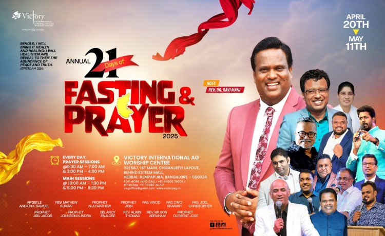 ബാംഗ്ലൂർ വിക്ടറി എജി വേർഷിപ്പ് സെൻററിൽ 21 ദിന ഉപവാസ പ്രാർഥന ആരംഭിച്ചു