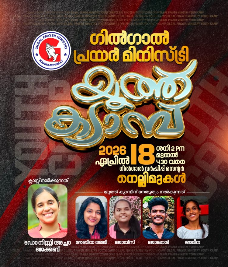 അടൂർ: ഗില്ഗാൽ പ്രയർ മിനിസ്ട്രി വാർഷിക കൺവെൻഷനും യുവജന ക്യാമ്പും ഏപ്രിൽ 17 വെള്ളി മുതൽ 19 ഞായർ വരെ അടൂർ നെല്ലിമുകൾ ജംഗ്ഷന് സമീപം നടക്കും. പാസ്റ്റർ അജി ആന്റണി ഉദ്ഘാടനം നിർവഹിക്കും. ഡോ ജോൺസൺ ഡാനിയൽ, പാസ്റ്റർ വർഗീസ് എബ്രഹാം, എസ്തേർ മഹേഷ് എന്നിവർ പ്രസംഗിക്കും. ഏപ്രിൽ 18 ഉച്ചകഴിഞ്ഞ് 2 മണിക്ക് നടക്കുന്ന യൂത്ത് ക്യാമ്പിൽ ഡോ. നിസ്സി അച്ചാ ജേക്കബ് ക്ലാസുകൾ നയിക്കും. ഗില്ഗാൽ വോയ്സ് സംഗീത ശുശ്രൂഷയ്ക്ക് നേതൃത്വം നൽകും.