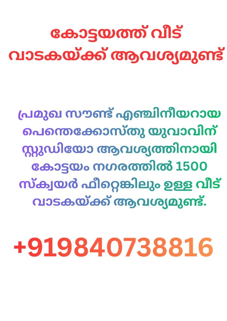 കോട്ടയത്ത് വാടകയ്ക്ക് വീട് ആവശ്യമുണ്ട്