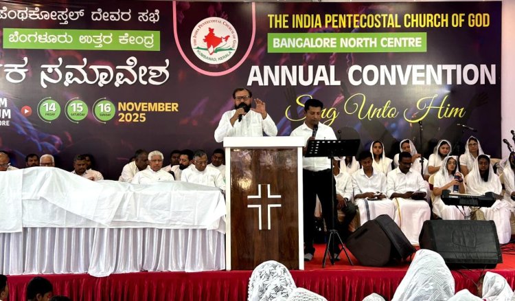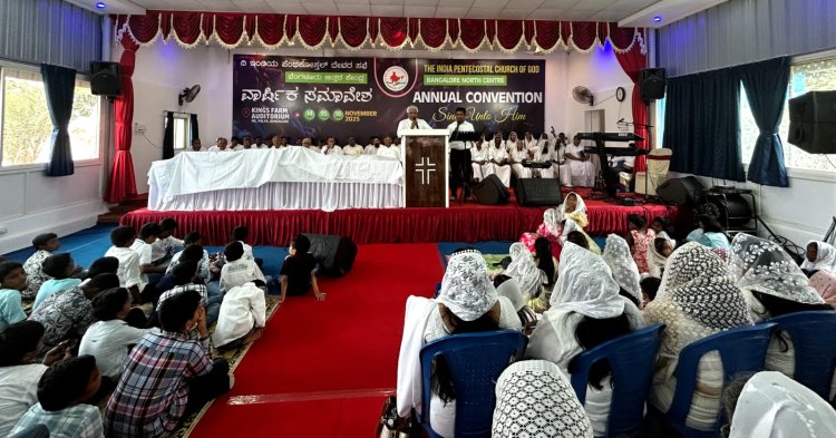 ബെംഗളുരു: ഇന്ത്യാ പെന്തെക്കോസ്ത് ദൈവസഭ (ഐ.പി.സി) നോർത്ത് സെന്റർ വാർഷിക കൺവൻഷൻ എം എസ് പാളയ കളത്തൂർ ഗാർഡൻസിന് സമീപം കിംങ്ങ്സ് ഫാം ഓഡിറ്റോറിയത്തിൽ സംയുക്ത ആരാധനയോടെ കൺവൻഷൻ സമാപിച്ചു .
