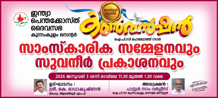 ഐപിസി കുന്നംകുളം സെന്റർ: സാംസ്കാരിക സമ്മേളനവും ജൂബിലി കൺവെൻഷനും ജനു.1 മുതൽ