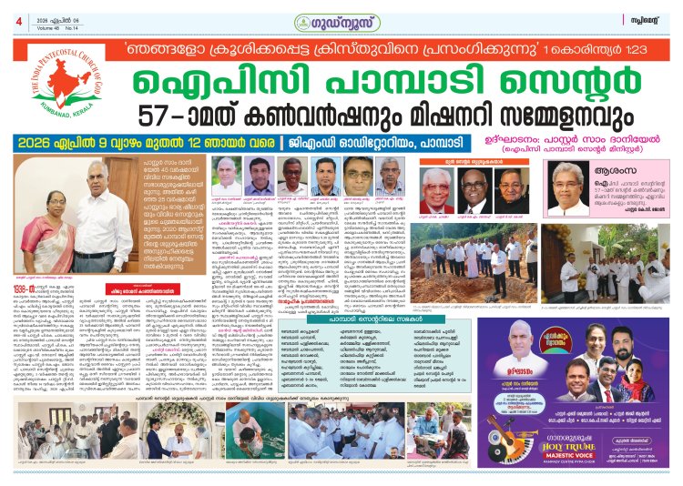 ഏപ്രിൽ 9 ന് ആരംഭിച്ച ഐപിസി പാമ്പാടി സെൻ്ററിൻ്റെ 57- മതു കൺവെൻഷൻ ഉത്ഘാടനം ചെയ്തു സംസാരിക്കുകയായിരുന്നു അദ്ദേഹം.