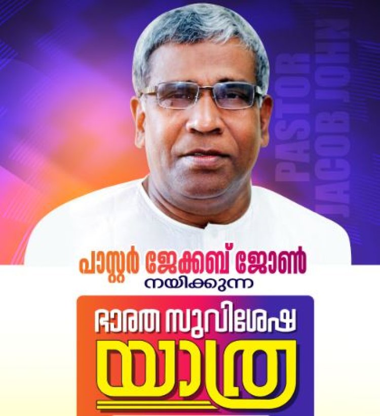 പാസ്റ്റർ ജേക്കബ് ജോൺ നയിക്കുന്ന "ഭാരത പ്രാര്ത്ഥന യാത്ര' കേരളത്തിൽ ഏപ്രിൽ 9 നാളെ മുതൽ