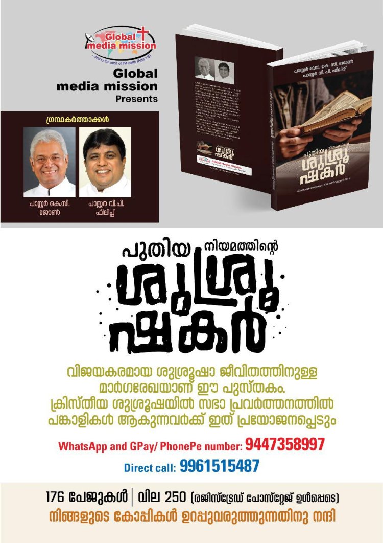 'പുതിയ നിയമത്തിന്റെ ശുശ്രൂഷകർ' എന്ന പുസ്തകം ഗുഡ്ന്യൂസ് വീക്കിലി കോട്ടയം ഓഫീസിൽ ലഭ്യമാണ്