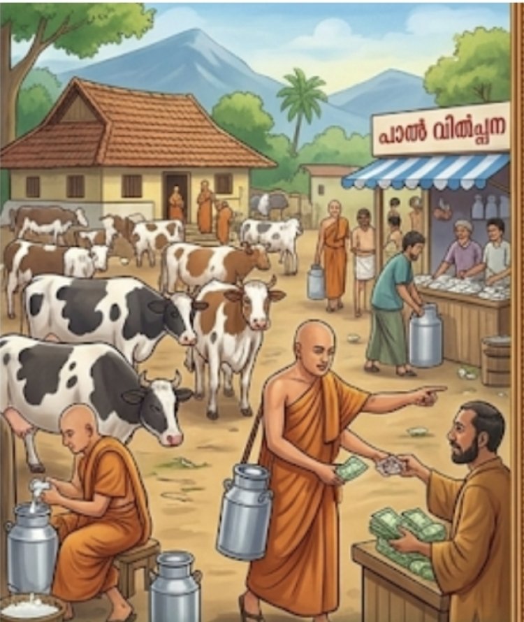 കുറെ ദിവസങ്ങൾ കഴിഞ്ഞപ്പോൾ പാലിനുവേണ്ടി ചെലവഴിക്കുന്ന തുക ഒരു ഭാരമായി അവർക്കു തോന്നി. ആശ്രമത്തിൽ പശുക്കളെ വളർത്തുവാൻ സൗകര്യം ഉണ്ടായിരുന്നതിനാൽ ഒരു കറവപ്പശുവിനെ വാങ്ങുവാൻ ചിന്തിച്ചു. അത് വിജയിച്ചുവെന്ന് കണ്ടപ്പോൾ പശുക്കളുടെ എണ്ണം വർദ്ധിപ്പിച്ചു. ധാരാളം പാൽ കിട്ടുവാൻ തുടങ്ങിയപ്പോൾ അതു വിറ്റ് പണം ഉണ്ടാക്കി. അതോടെ പഴയതുപോലുള്ള ആത്മീയസന്ദേശങ്ങളുടെ ഉറവ ആശ്രമത്തിൽ വറ്റിപ്പോയി.