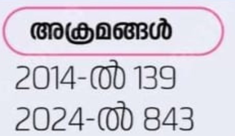 ഈവർഷം സെപ്റ്റംബർ വരെ 579 അതിക്രമങ്ങളുണ്ടായി. അതിൽ 39 എണ്ണത്തിൽമാത്രമേ പോലീസ് എഫ്ഐആർ രജിസ്റ്റർചെയ്തിട്ടുള്ളൂ. 2014-2018 കാലയളവിൽ1052 അക്രമങ്ങളാണുണ്ടായിരു ന്നത്. 2019-'22 കാലയളവിൽ 62 ശതമാനം വർധനയോടെ 1711 അക്രമങ്ങളുണ്ടായി.