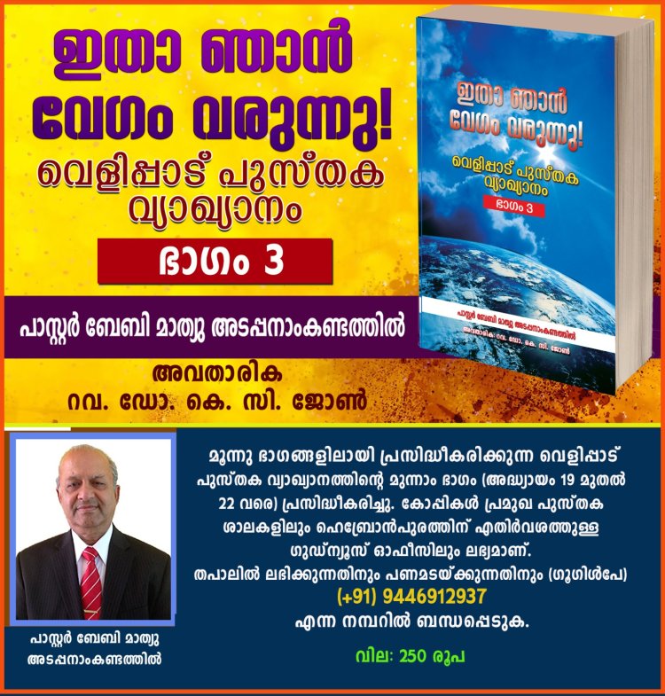 റായ്പൂര്: ഐപിസി.ഛത്തീസ്ഗഢ് സ്റ്റേറ്റ് വൈസ് പ്രസിഡന്റും ജനറൽ കൗൺസിൽ അംഗവുമായിരുന്ന പാസ്റ്റർ ബിനോയി ജോസഫ് (62) കർത്തൃസന്നിധിയിൽ ചേർക്കപ്പെട്ടു. സംസ്കാര ശുശ്രൂഷ വ്യാഴം (8 ജനുവരി) രാവിലെ 10 ന് റായ്പൂരിലെ ജാർവെ ക്രിസ്ത്യൻ സെമിത്തേരിയിൽ.