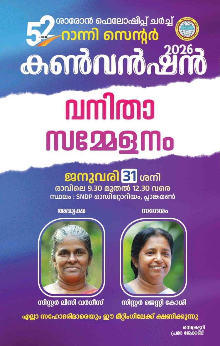 ശാരോൻ ഫെലോഷിപ്പ് റാന്നി സെൻ്റർ കൺവൻഷൻ ജനു.29 മുതൽ