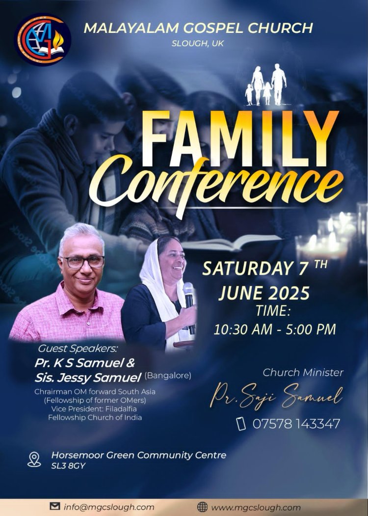 മലയാളം ഗോസ്പൽ ചർച്ച്: ഫാമിലി കോൺഫറൻസ് യുകെയിൽ ജൂൺ 7 ന്