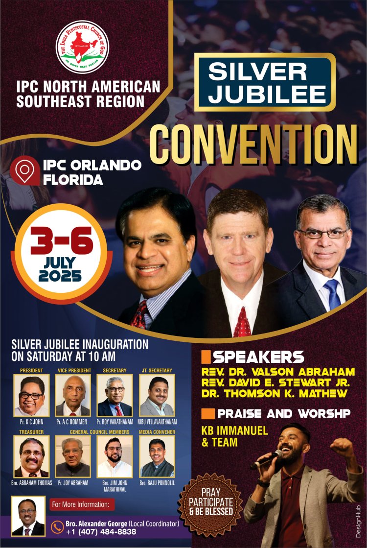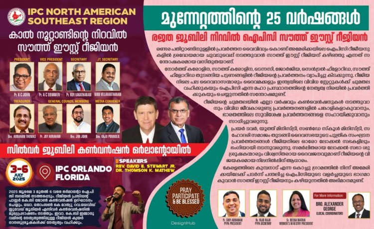 ഐപിസി സൗത്ത് ഈസ്റ്റ് റീജിയൻ സിൽവർ ജൂബിലി കൺവെൻഷൻ ജൂലൈ 3 മുതൽ